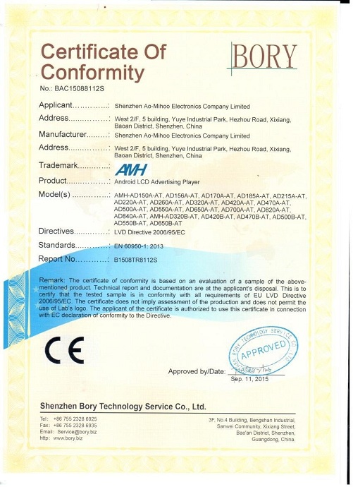 Home-About us-CertificateTel: +86-755-26063211 Ext 605